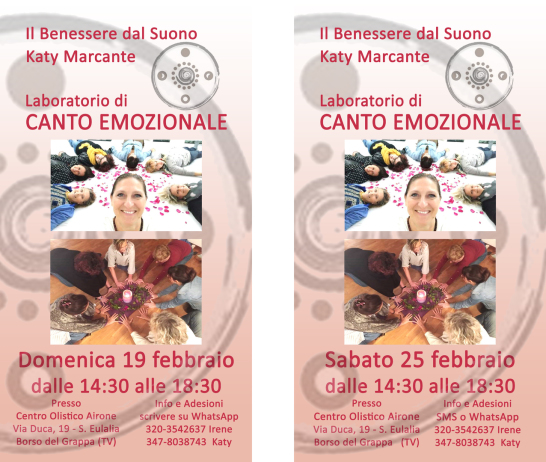 Domenica 19 Febbraio | Laboratorio Canto Emozionale | 14:30 - 18:30 |